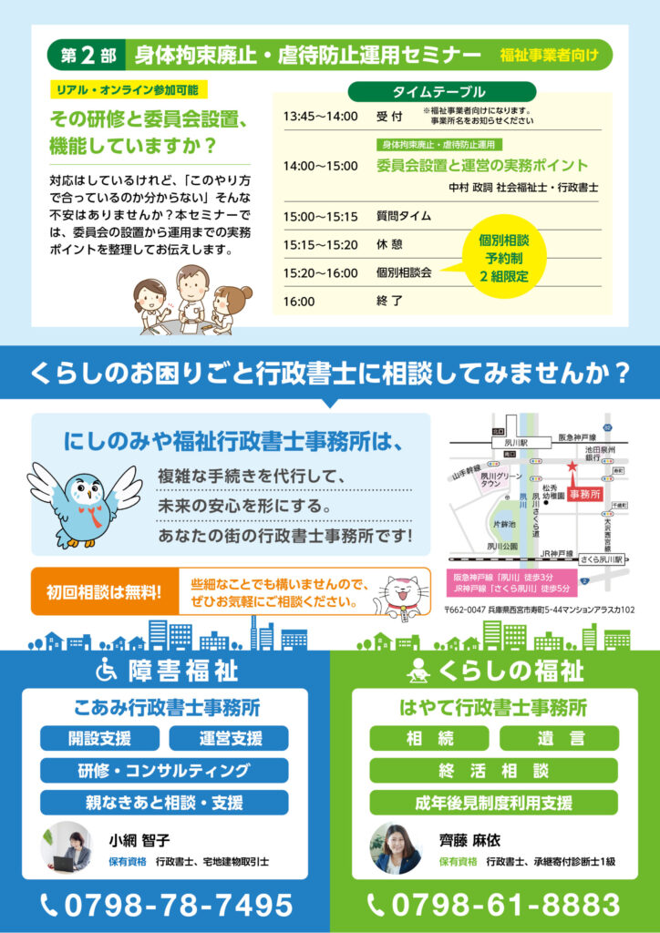 | 事務所名 | にしのみや福祉 こあみ行政書士事務所 (旧行政書士オフィスken) |